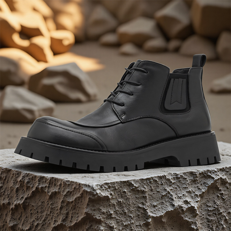 2025秋冬英伦侧拉链马丁靴男士高帮厚底机车靴子百搭休闲短靴