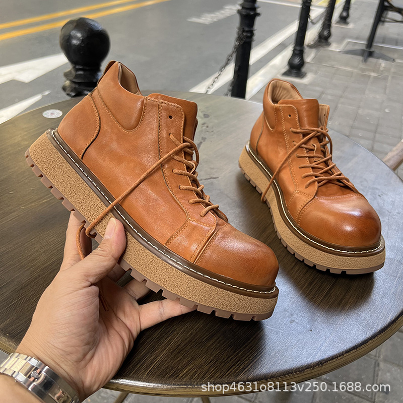 2025秋冬英伦复古马丁靴男款户外休闲工装靴时尚真皮厚底机车短靴