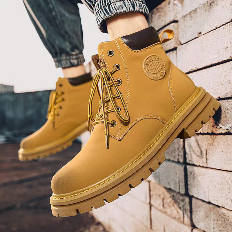 秋冬季新款男鞋马丁靴男女同款高帮靴中帮工装靴加绒保暖鞋情侣款