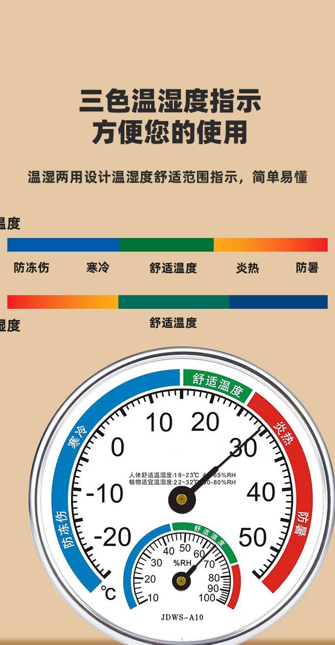 速売通クロスボーダーth101b指針温湿度計円形温度計室内家庭用温湿度計英語