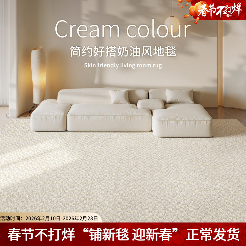 クリーム風じゅうたん客間2025新型四季純色防水寝室洗濯なし防汚高級感マット