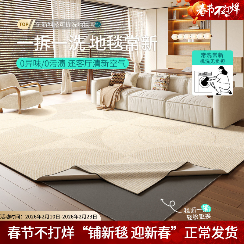 地毯客厅免洗可擦奶油风轻奢免打理沙发毯卧室大面积全铺床边地垫