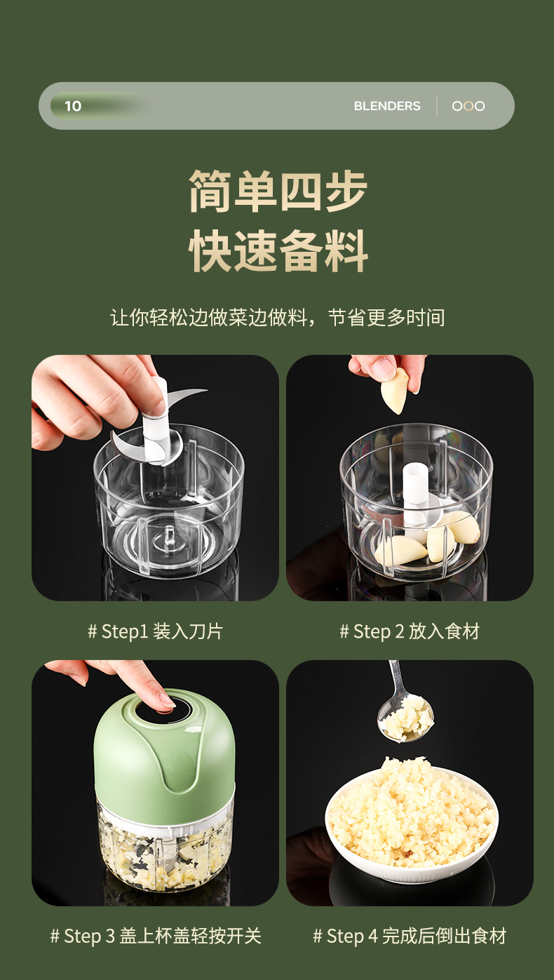 电动捣蒜器压蒜器辅食料理机无线迷你打蒜泥神器拉蒜