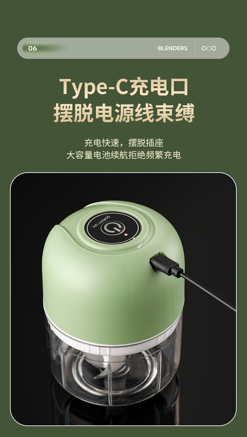 クロスボーダー工場卸売ニンニク泥器充電電動ニンニクミキサーミニ携帯自動ミキサー透明六刃