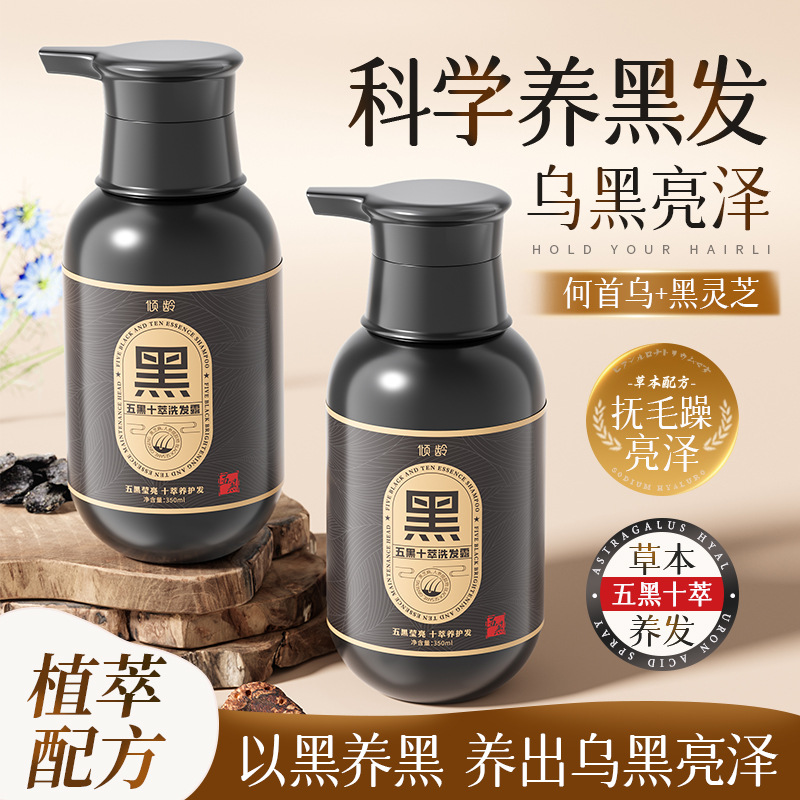 倾龄五黑十萃洗发露乌黑黑秀发柔顺亮泽改善毛躁去屑止痒