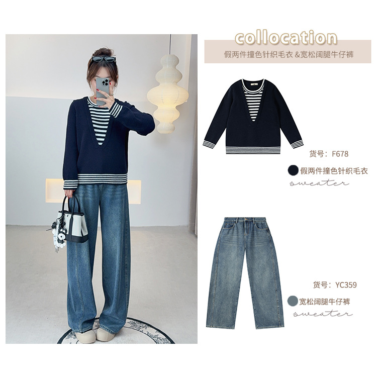 jia两件条纹拼接设计感针织毛衣