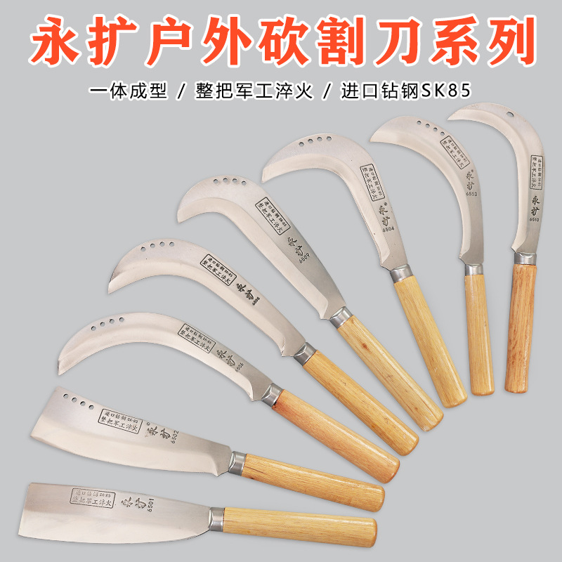 规格型号 永扩8155锻打砍割刀(无柄)/120把一箱,永扩8155锻打砍割刀(有柄)/120把一箱,永扩8165锻打砍割刀(无柄)/100把一箱,永扩8165锻打砍割刀(有柄)/100把一箱