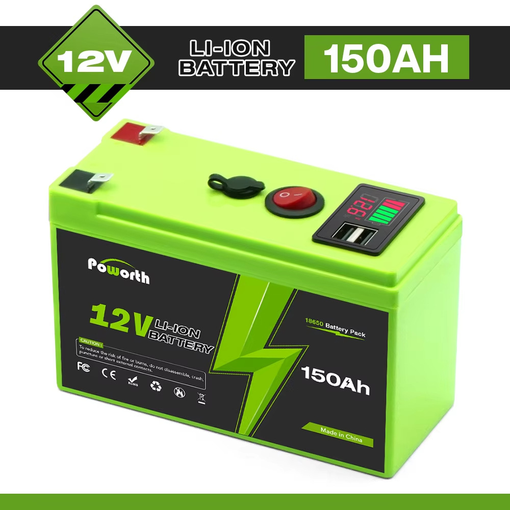 LiFePO4 12V 150Ah电池,内置BMS,400 0+循环可充电锂电池,非常适合骑乘玩具、滑板车、寻鱼器电池类型:锂离子电池标称容量:60Ah/80Ah/100Ah/120Ah/150Ah额定电压:12V电池型号:18650电池电压:3.7V电池重量:1.3kg(150Ah)电池尺寸:5.9inx9.5inx6.4in/15cmx9.5cmx6.4cm输入充电电压:12.6V输入充电电流:标准3A,快速5A充电温度:0~45℃放电温度:-20~60℃存储温度:-20~45℃内部BMS保护电路:过载、过放电rge、过电流、短路保护。最大电压:12.6V充电状态指示灯为红色。充满电后会自动关闭并变为绿色。