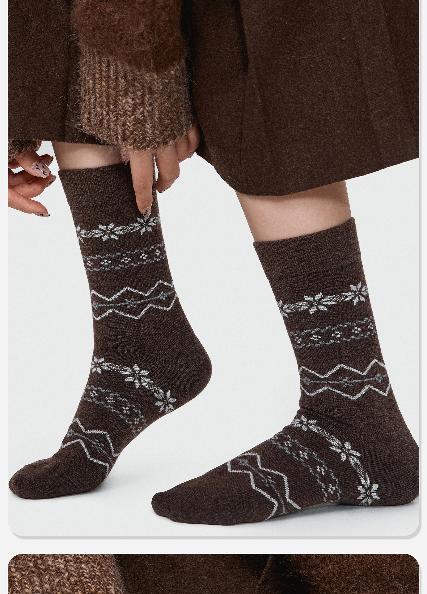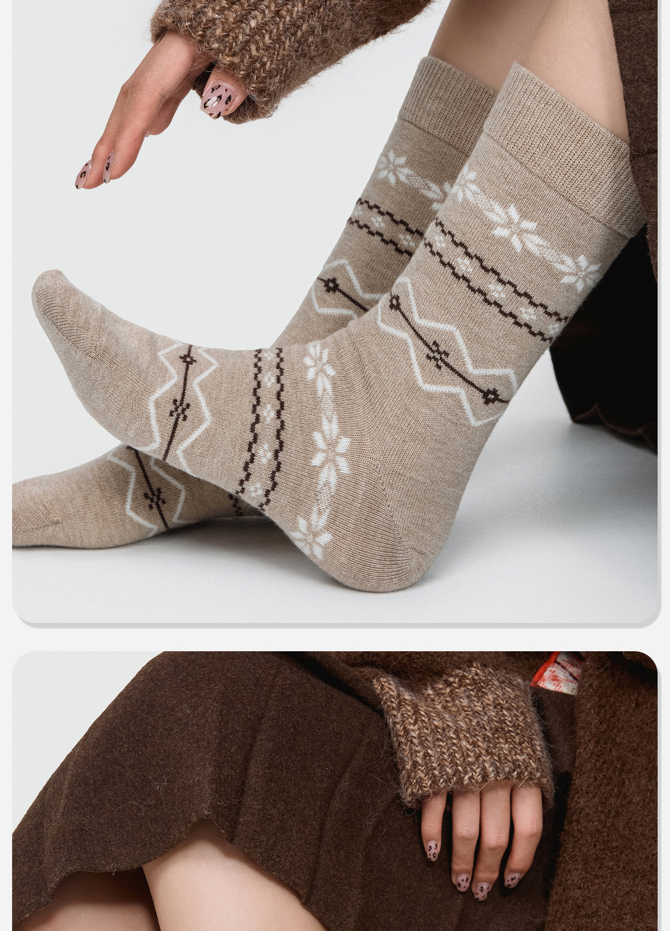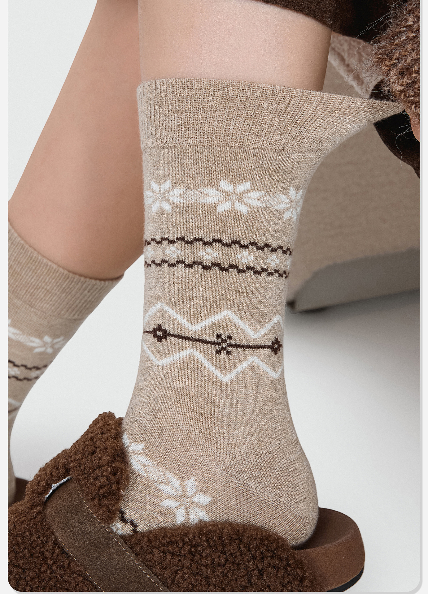 86084诸暨袜子费尔岛羊毛女士中筒袜复古森系ins潮雪花袜圣诞保暖