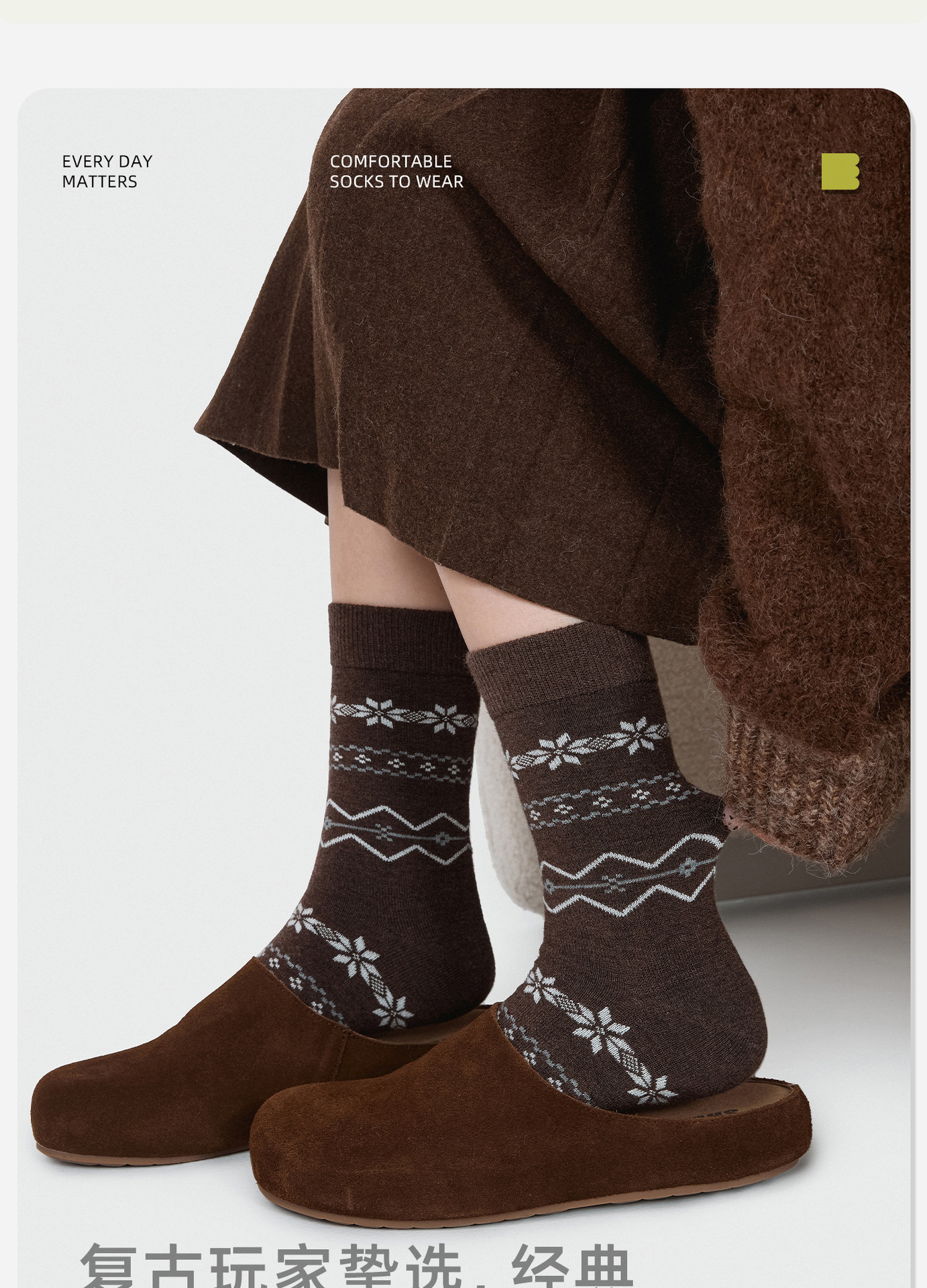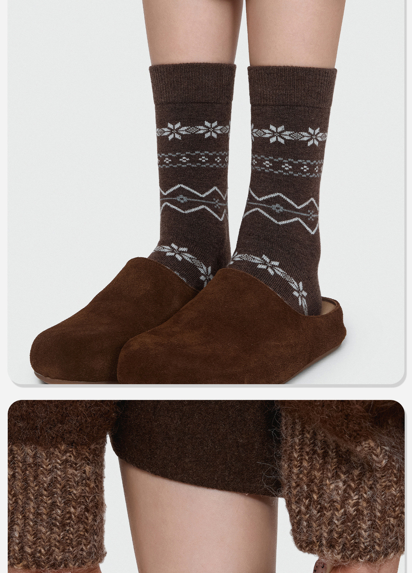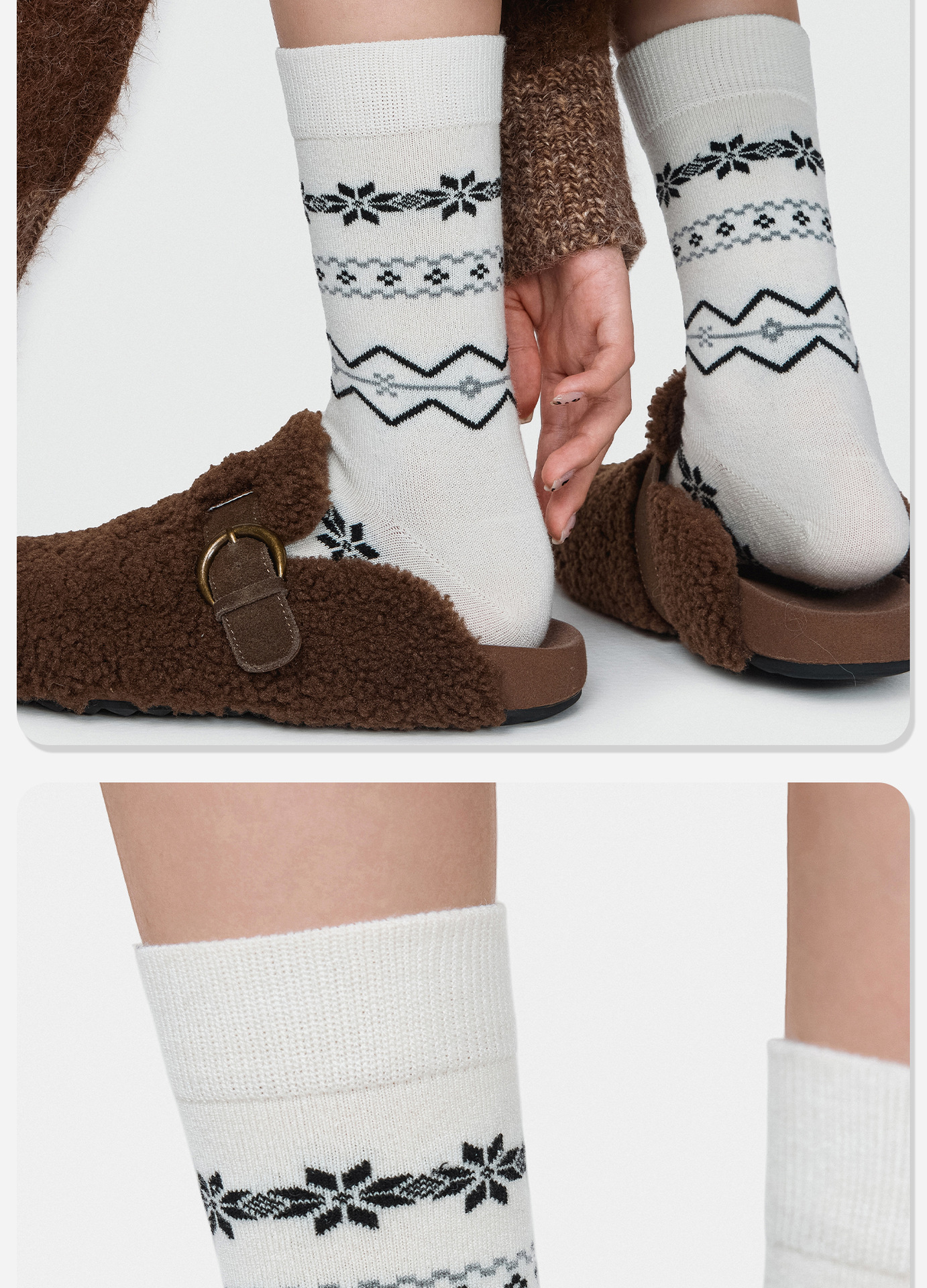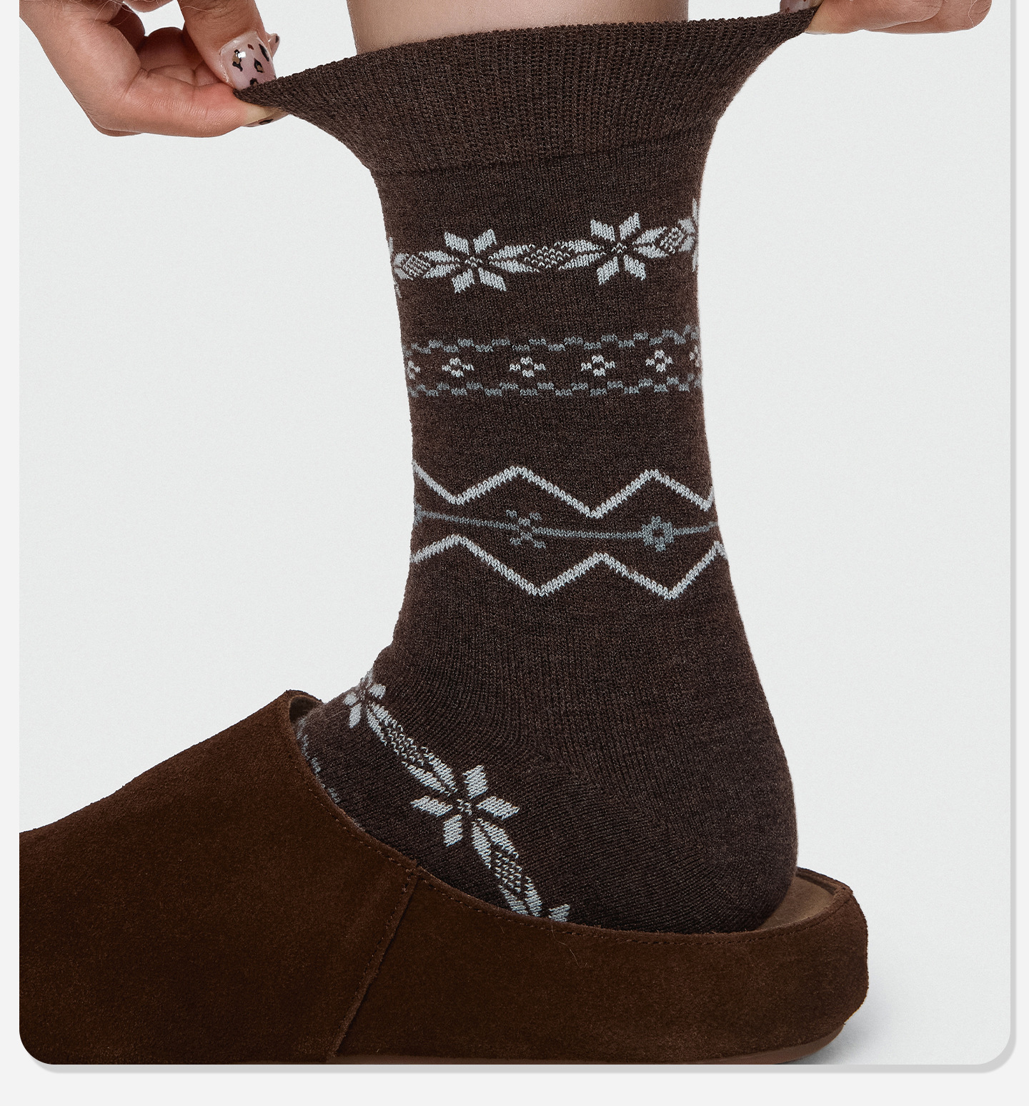 86084诸暨袜子费尔岛羊毛女士中筒袜复古森系ins潮雪花袜圣诞保暖