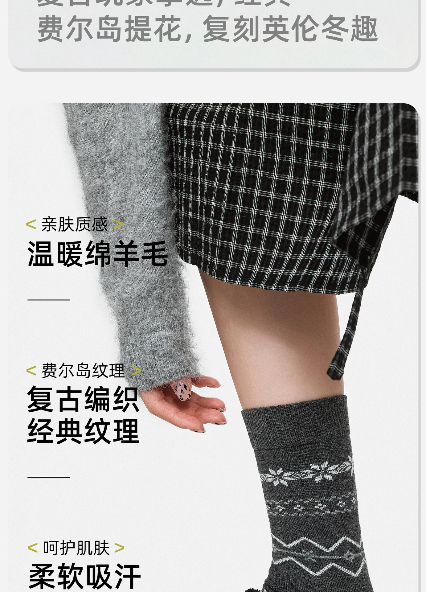 86083羊毛袜子女英伦风秋冬加厚保暖学院风菱格堆堆袜女费尔岛