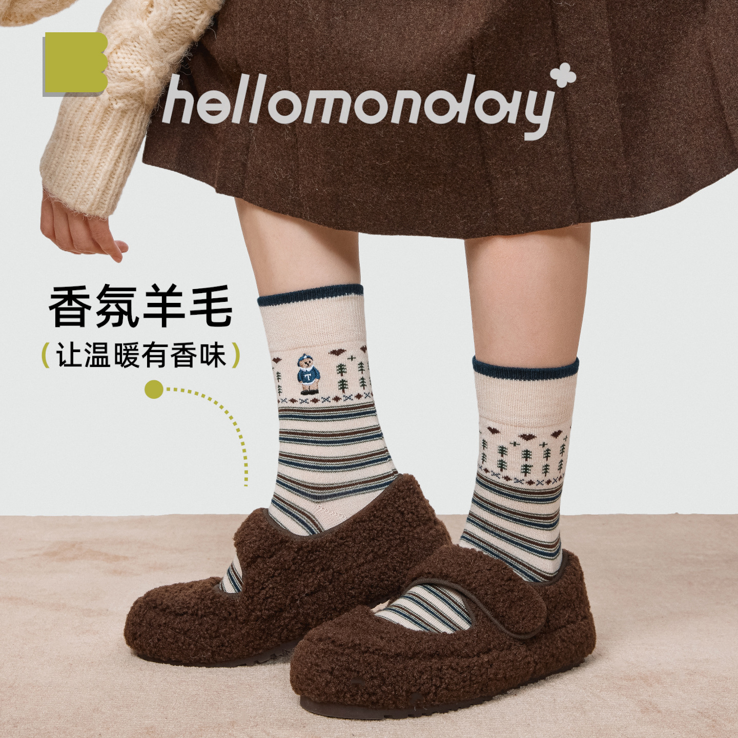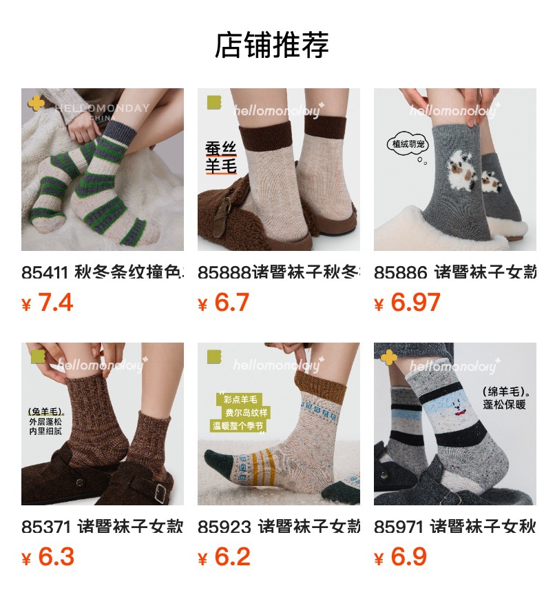 诸暨袜子86089羊毛袜小熊刺绣香味费尔岛保暖中筒女袜韩国卡通ins