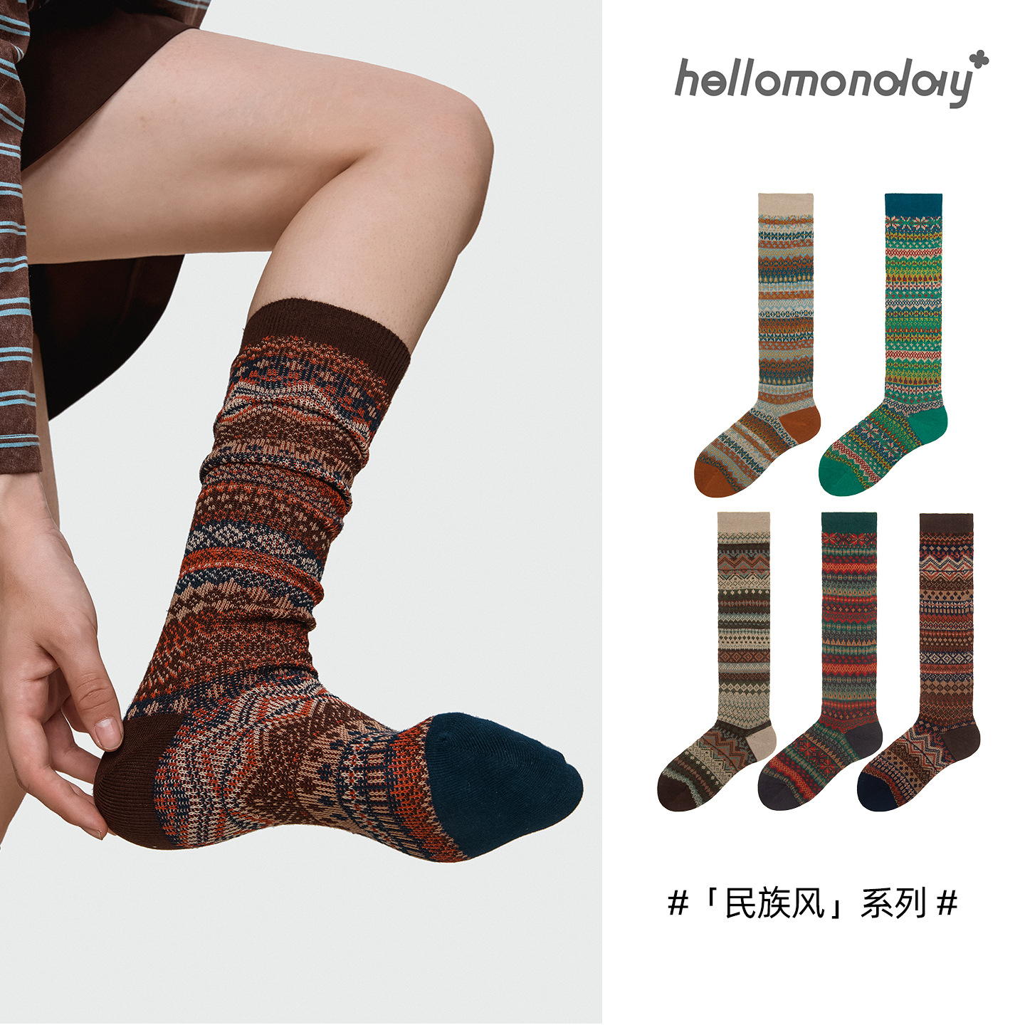 诸暨袜子85918双针小腿女袜秋冬保暖棉袜日系复古袜子个性民族风