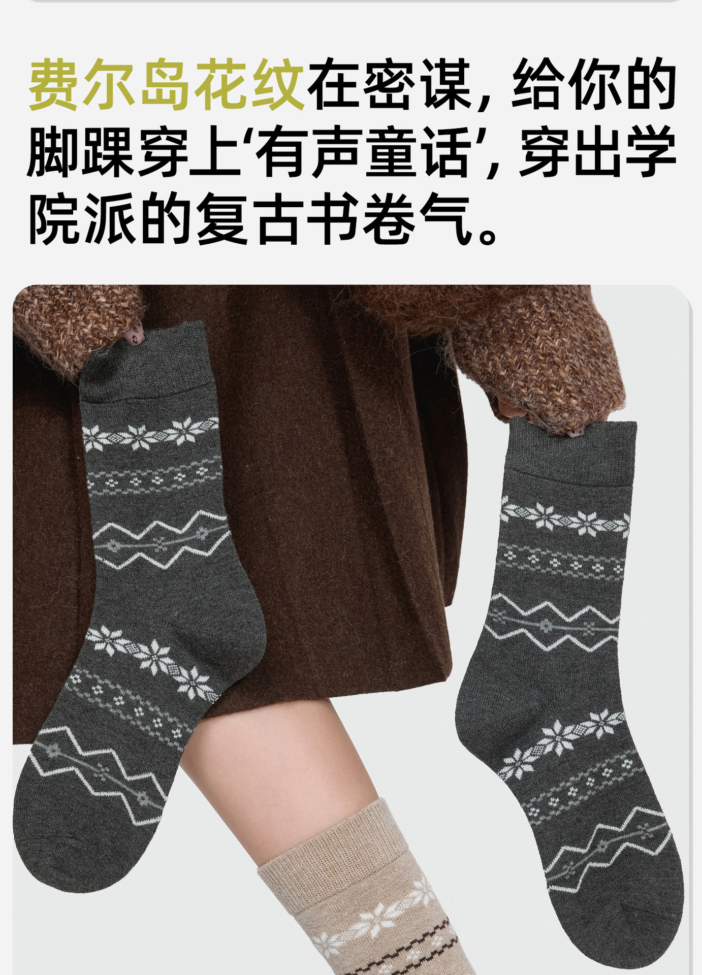 86072诸暨袜子复古费尔岛加厚棉袜子女ins风卡通中筒袜秋冬保暖堆