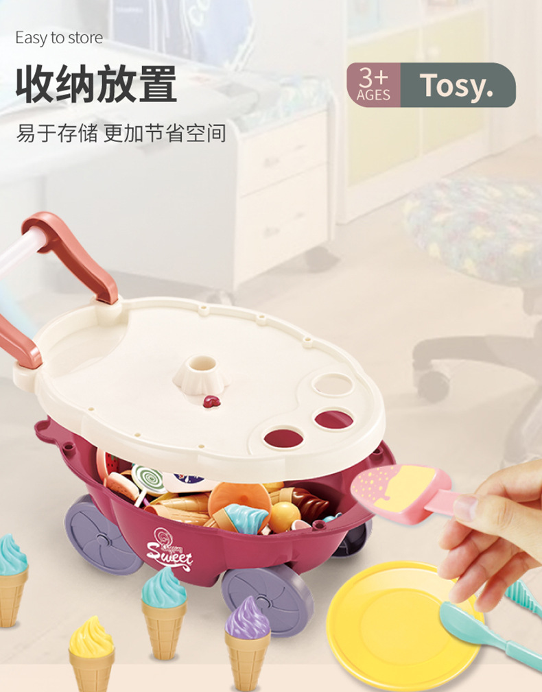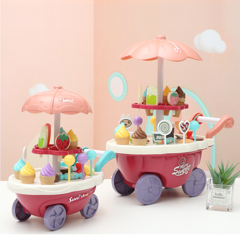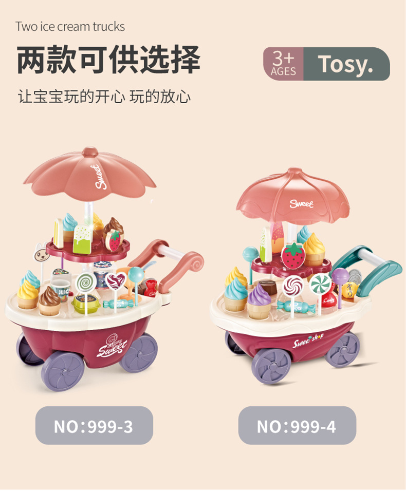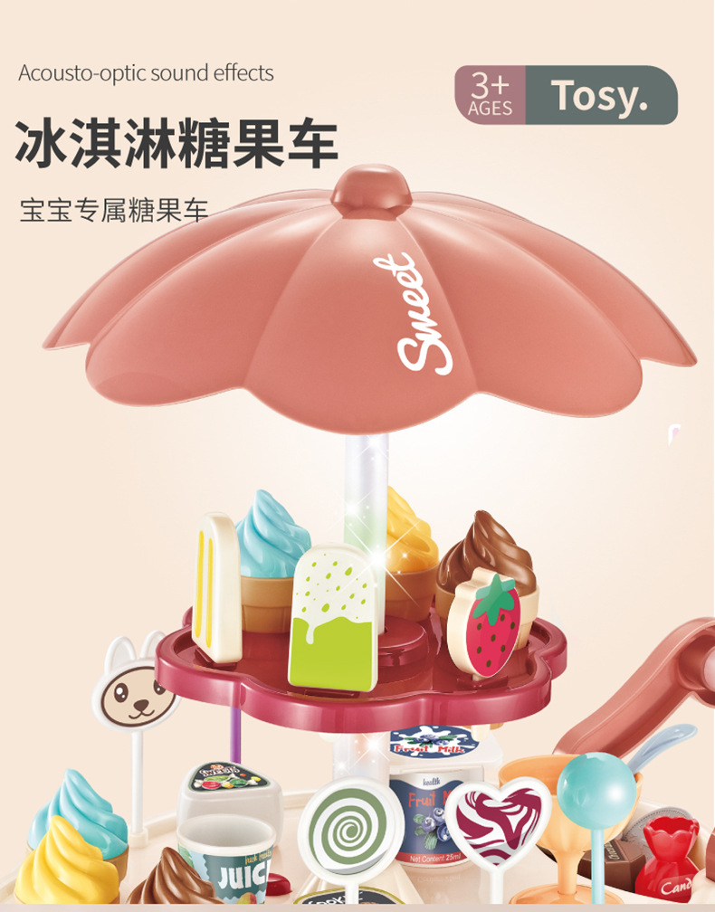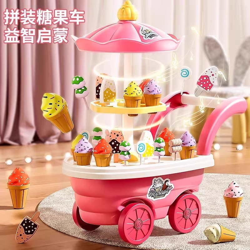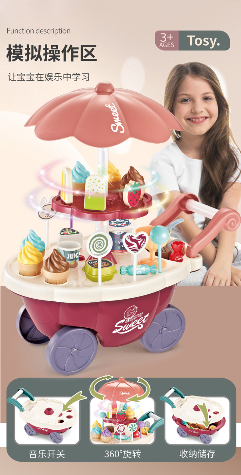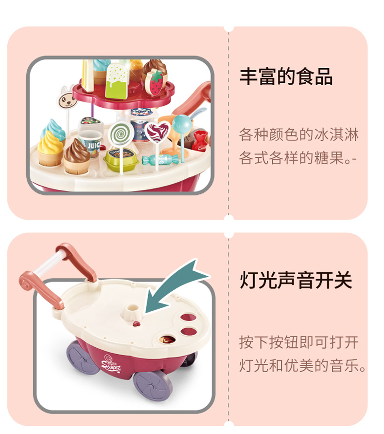 儿童过家家冰淇淋车音乐玩具女孩糖果雪糕手推车冰激凌机宝宝套装