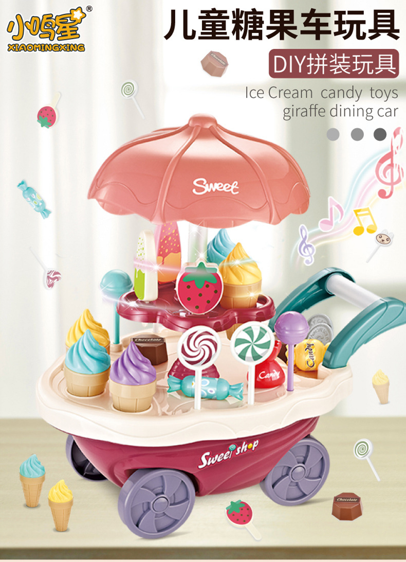 儿童过家家冰淇淋糖果雪糕车玩具宝宝益智音乐灯光厨房套装批发
