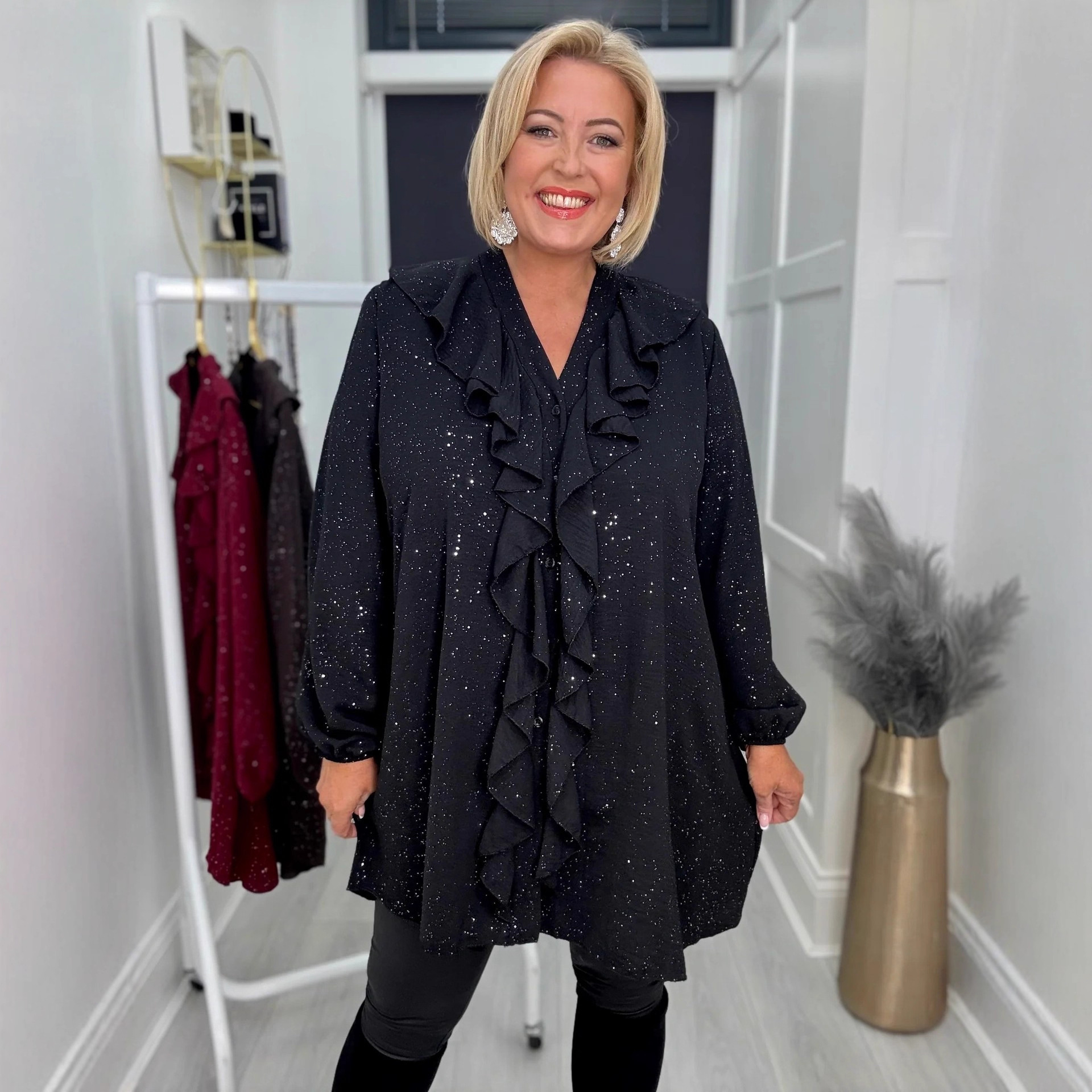 2025欧美跨境亚马逊独立站洒金木耳边宽松休闲V领长袖衬衫