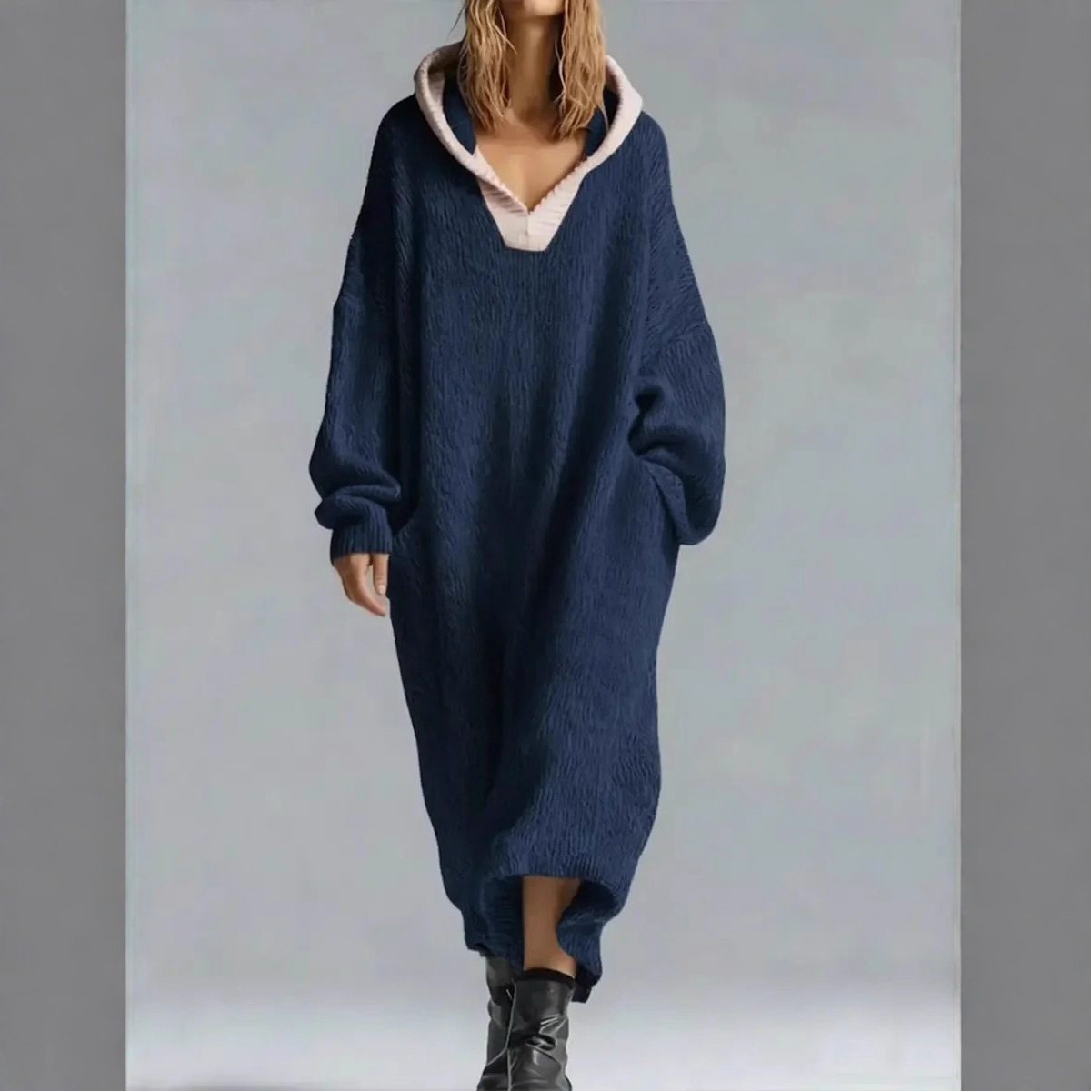 2025欧美跨境亚马逊独休闲宽松舒适连帽针织连衣裙