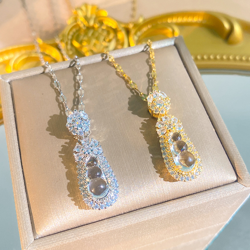 新品璀璨满钻仿玉髓系列钛钢项链女精致高级感流苏葫芦轻奢锁骨链