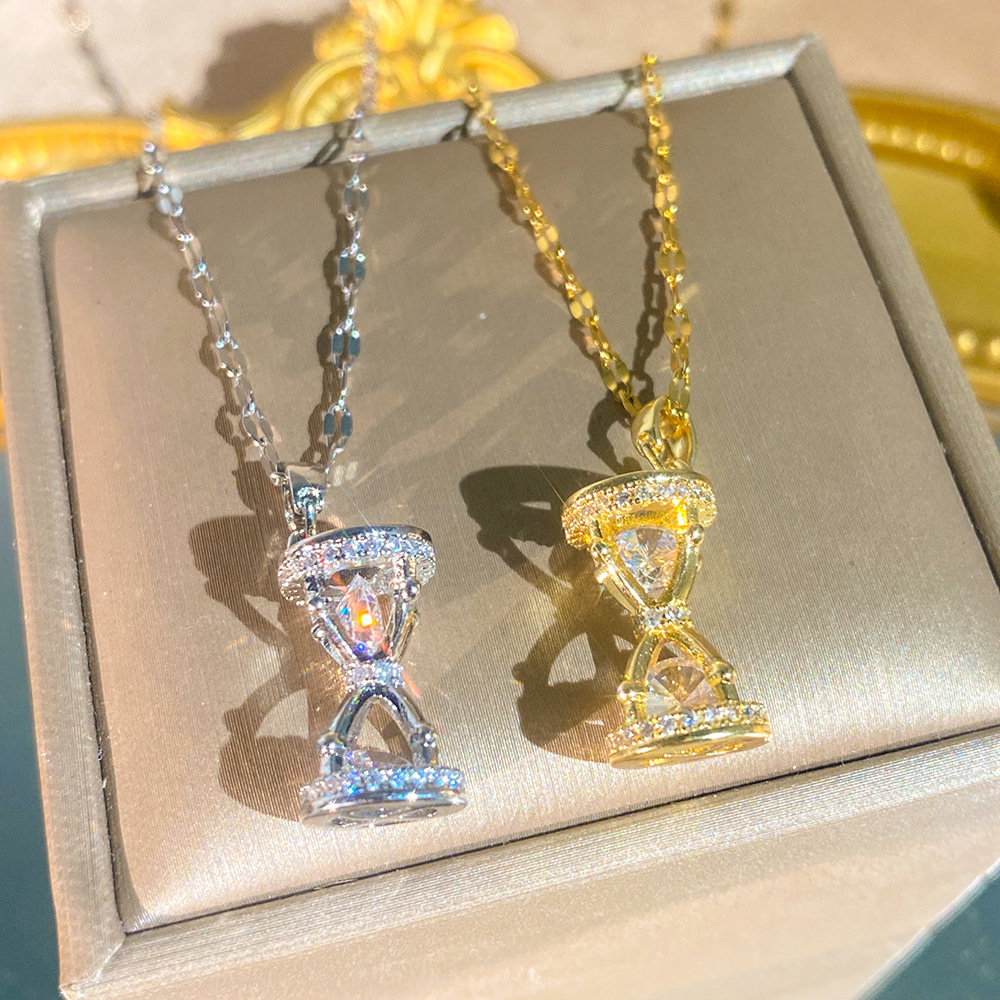 跨境爆款气质镂空沙漏项链钛钢轻奢满钻锁骨链个性设计感锆石饰品