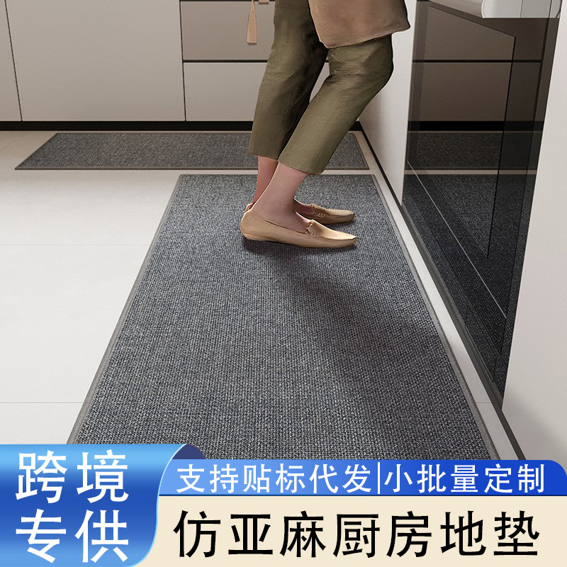 クロスボーダーキッチンフロアマット、滑り止め、リネン風、吸水性フットマット、ロングドアマット、汚れに強く、洗濯不要、拭き取り可能なカーペット