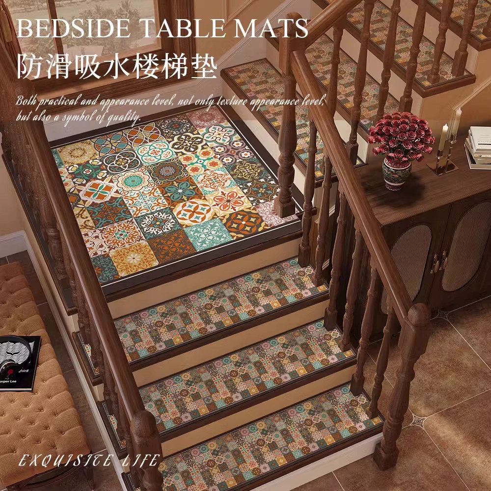 レトロ風専用階段足踏みマット家庭用階段防音自己接着滑り止め吸水カーペットアメリカ風衝撃吸収マット