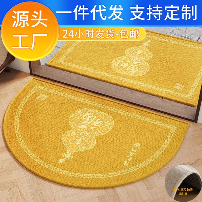 ゴールデンフォーチュンひょうたん半円形新中国風フロアマット玄関ドアマット玄関カーペット玄関ホール黄色の足マット