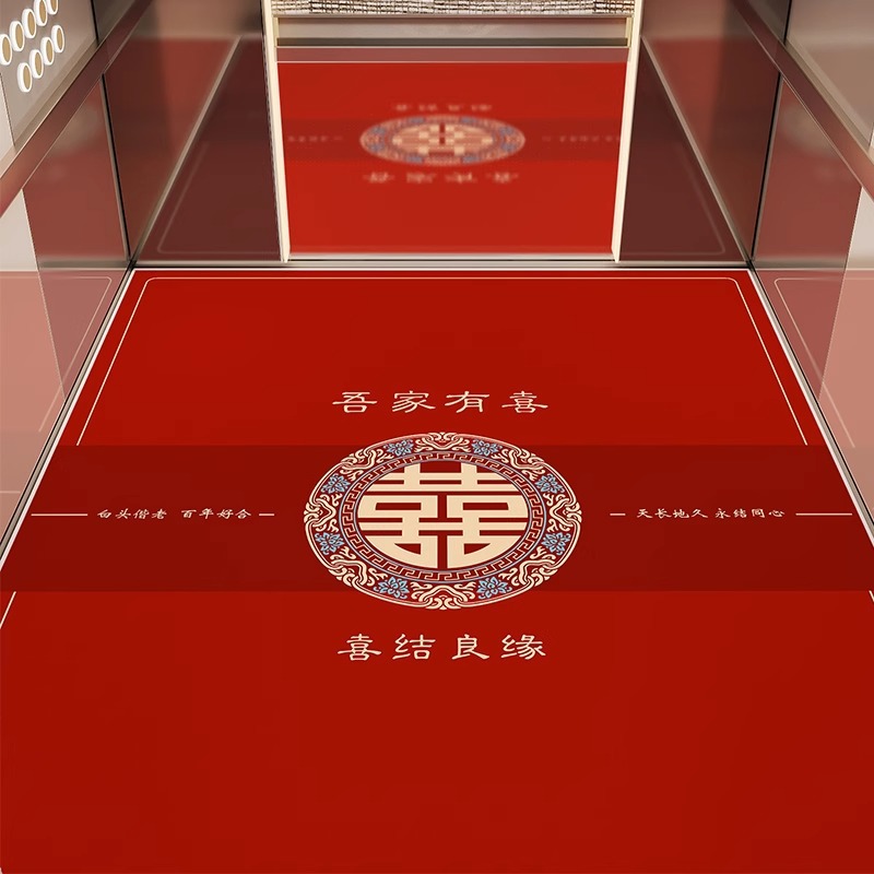 エレベーターカーペット結婚式赤いハッピーワードカーフロアマットヴィラホーム階段入口玄関ドア入口お祝いフロアマット