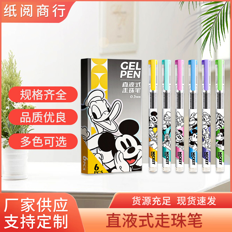 新しいストレート液体ボールペンミッキー大容量ストレート液体ボールペン滑らかな先端と速乾性ブラシペン