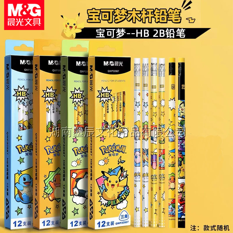 朝光宝可夢鉛筆三角木棒鉛筆hb学生幼稚園正姿2bゴム連名ピカチュウ