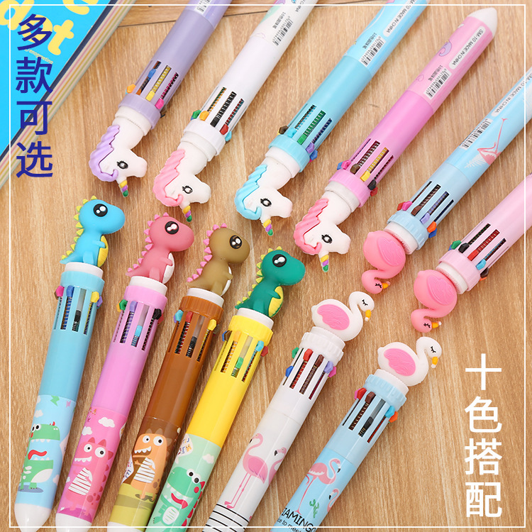 クリエイティブ文房具十色ボールペン漫画学生カラー落書きペン少女心多色押しボールペン卸売り