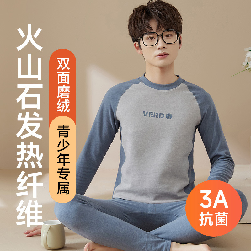 青少年絨徳秋衣秋ズボン男子中学校高校の学生は発熱抗菌保温下着セット秋冬