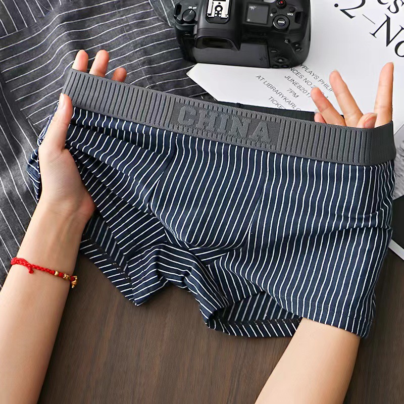 シンプルなストライプの中腰の快適な男性の平角の下着の青少年の個性は色の腰の頭の通気性の股の部の四角のズボンにぶつかります。