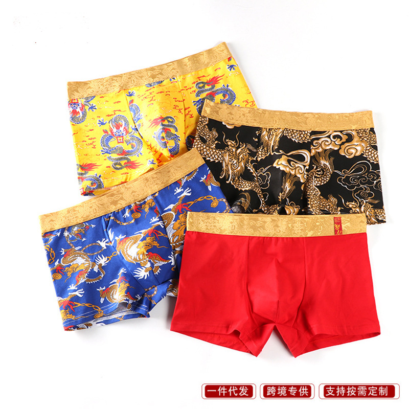 メンズ本命年用赤い中腰下着、純綿の赤いボクサーパンツ、お祝い用四角パンツ、ギフトボックス入り、通気性、大きいサイズ