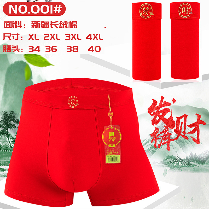 本命年男性下着男性ワインレッド純綿通気性平角ズボン男性新年プレゼント結婚祝い四角ズボン