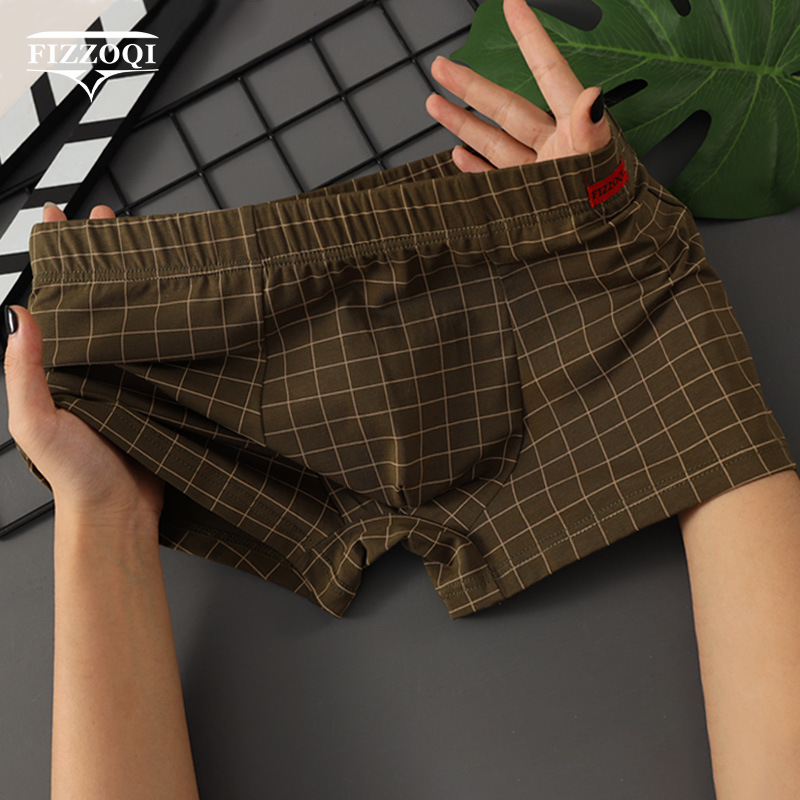 新商品の純綿男性パンツ夏の平角ズボンの中腰男子の格子の四角いズボンのファッションの青年パンツの通気性