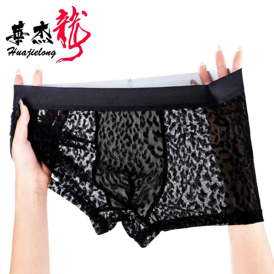 メンズ下着平角ズボン透明セクシー男性下着氷糸無痕下着赤下着男