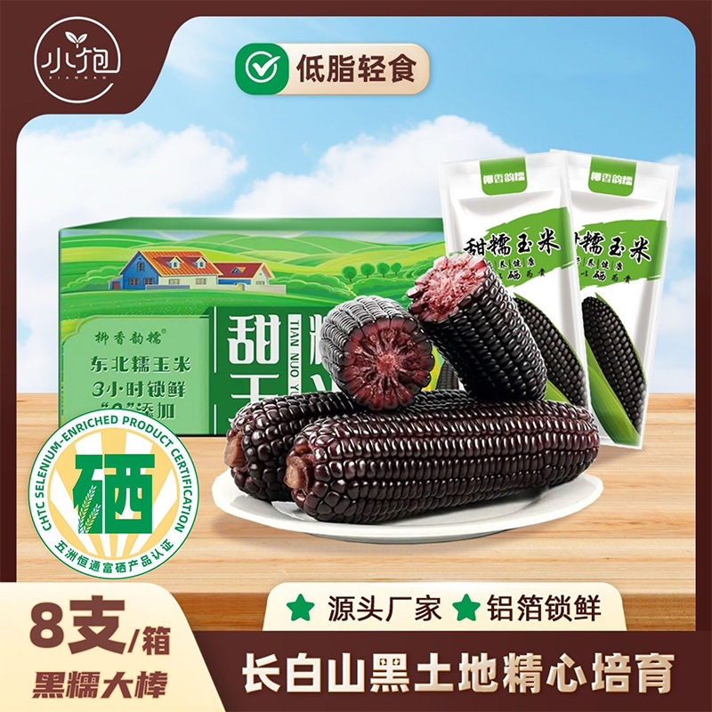 季節の東北産トウモロコシ、新鮮なもちもちしたトウモロコシ、セレン豊富な黒トウモロコシ、個別真空包装8本入り大粒スイートコーン