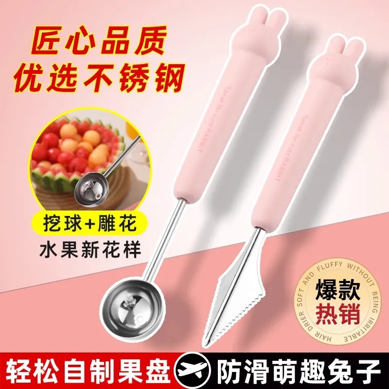 INSフルーツボールスクレーパー、スイカの果肉を取るためのスプーン、肉を取るためのツール、彫刻ナイフアーティファクト