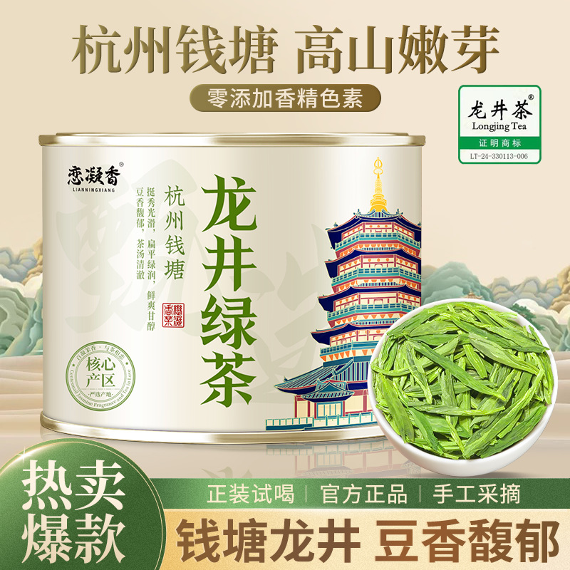Lianningxiang 龍井茶 新茶 本場杭州銭塘産区 豆の香り 香りの強い緑茶 春茶 50g缶