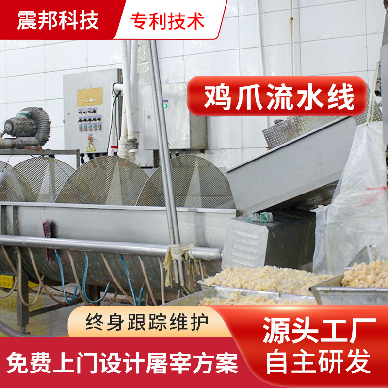 Zhengbang Machinery 鶏足加工ライン 鶏足と鶏足の皮を熱し、爪を削り、黄色い皮を除去し、切断およびグレーディング装置