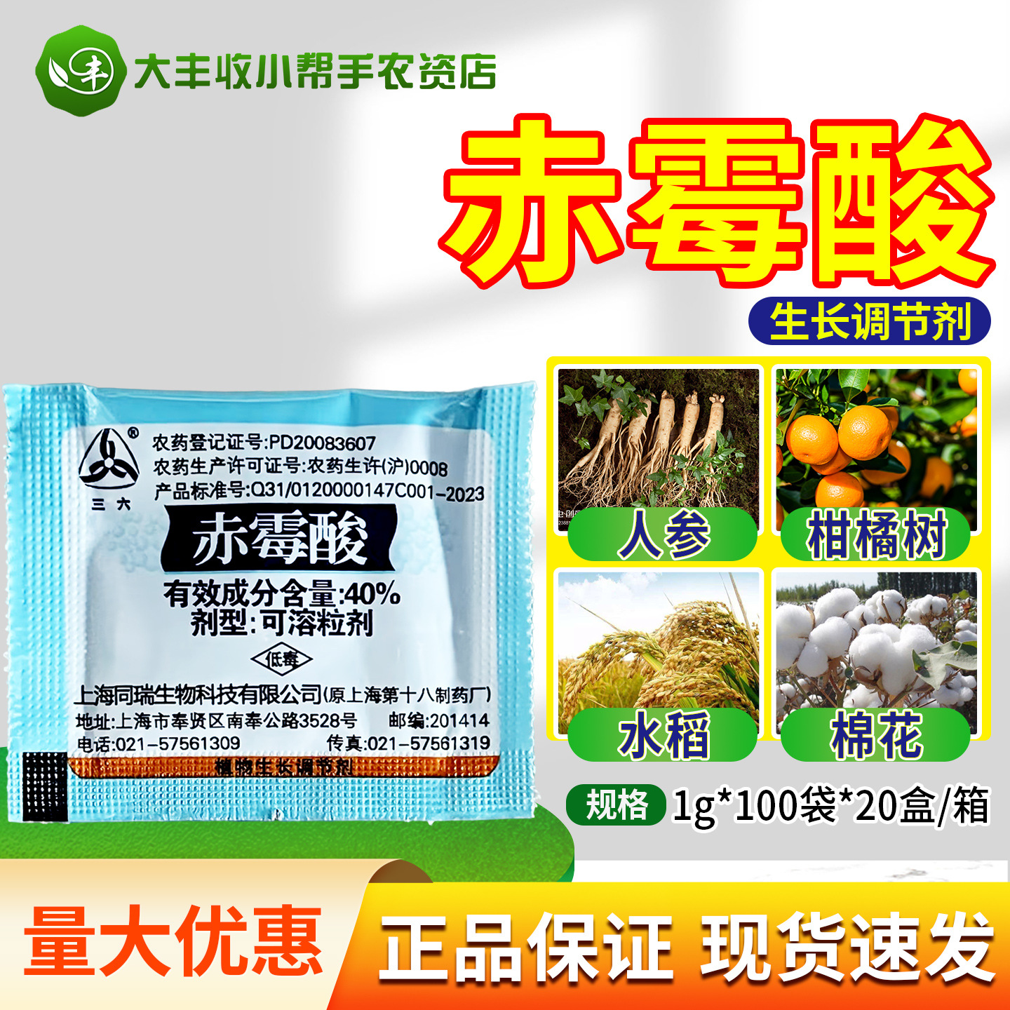 上海同瑞三六3%赤霉酸赤毒素920増重苗齐無核成長調整剤植物
