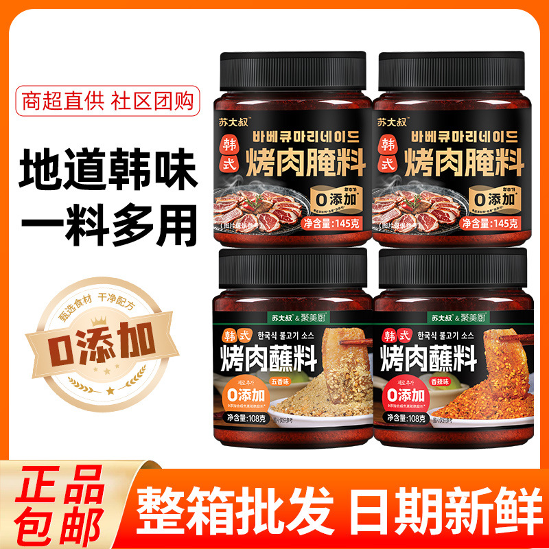 焼肉に韓国風の味をつけて、五花肉を焼いて、調味料を組み合わせてセットします。