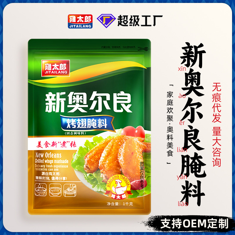 業務用はニューオーリンズの手羽焼きを詰めて商用1kgのフライドチキンの足のバーベキューの肉の調味料の大きい包装を作って卸売りして注文します。