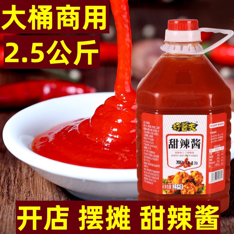 韓国式甘辛ソース大桶商用5斤インスタントご飯と麺ソースを混ぜたハンバーガーのフライドチキンとフライドポテトをソースにつけて卸売りします。