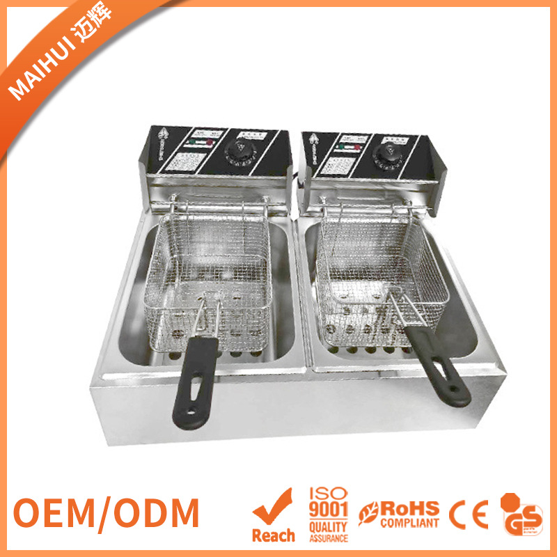 メーカーの卓上二重シリンダーの電気フライヤーの商用フライドポテトの揚げ機は二重シリンダーのフライヤーを厚くします。