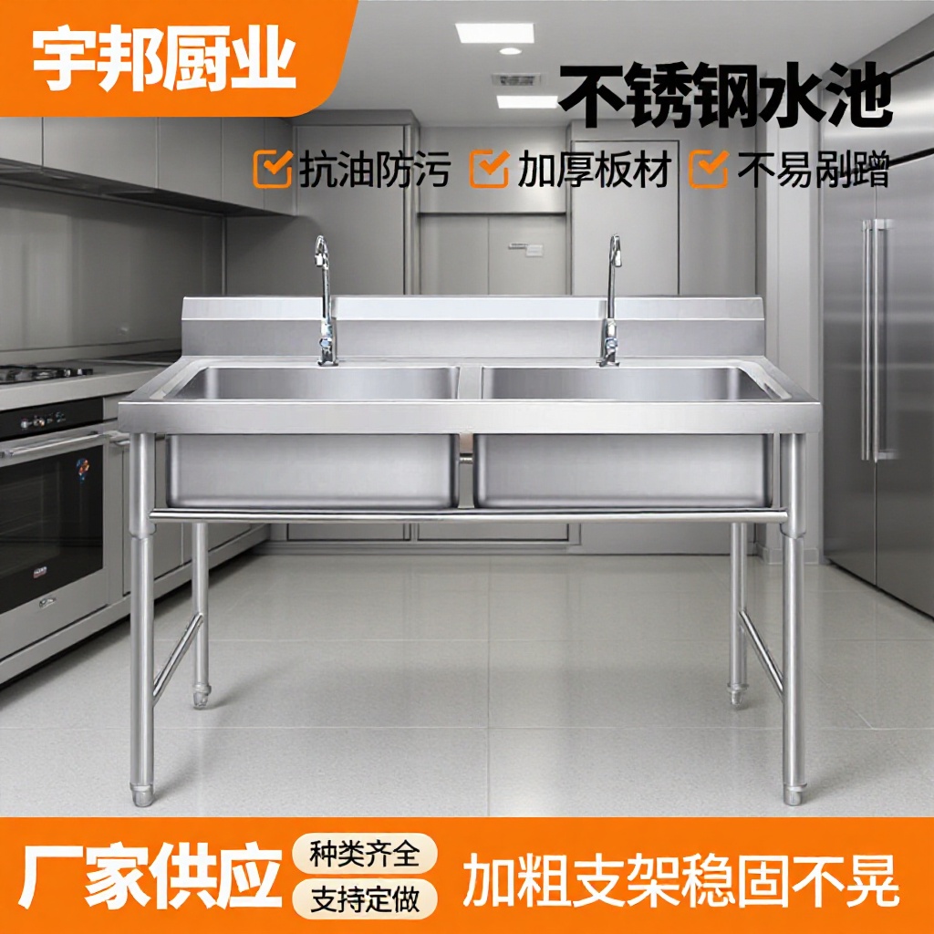 厚みのある304業務用ステンレス製シンク、単槽・二槽・三槽、食品グレード、野菜洗い桶、食器洗いシンク、食堂・厨房専用