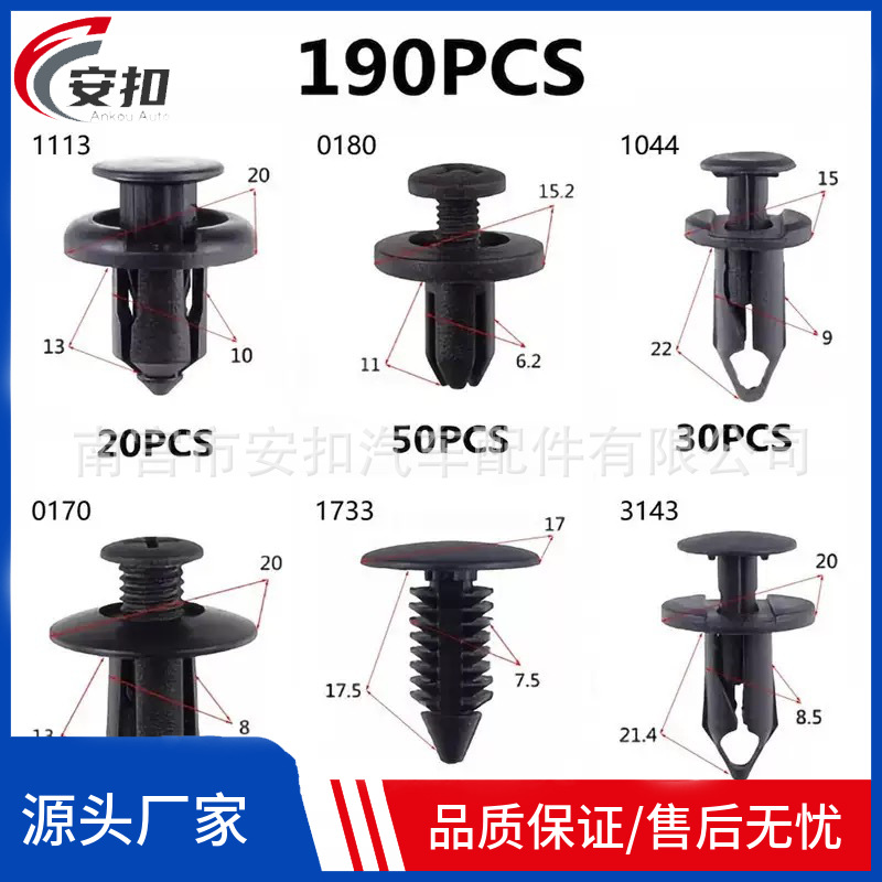 190 個袋入りバックル 6 種類の車のファスナークリップリベットドアパネルフェンダーバンパー装飾バックル