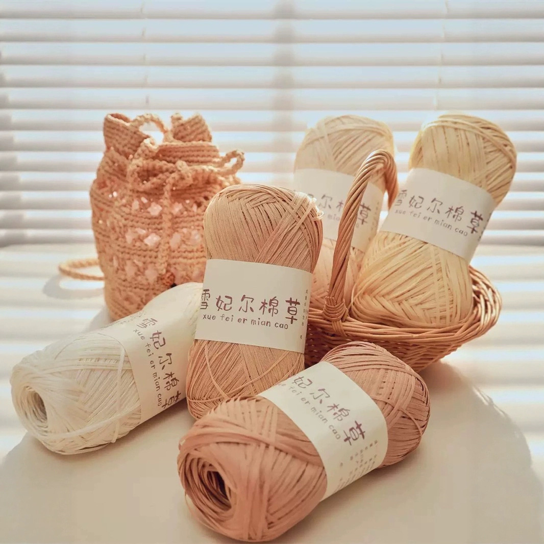 本物の雪フィエール綿わら手織り diy 麦わら帽子ラフィア糸かぎ針編みバッグラフィア