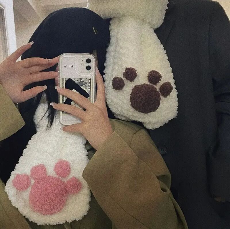 新しい手作りのdiy猫の爪のマフラーの毛がふわふわしています。